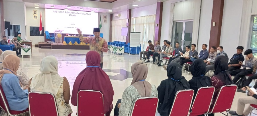 Dalam kesempatan tersebut, Prof. Dr. Sudarman menyampaikan materi tentang Metode Pemahaman Agama Islam. Beliau menegaskan bahwa pemahaman agama harus didasarkan pada manhaj (metodologi) yang benar, sesuai tuntunan Al-Qur’an dan Sunnah, serta selaras dengan spirit tajdid (pembaruan) yang menjadi ciri khas Muhammadiyah “Dalam memahami agama Islam, kita harus memiliki metode yang jelas agar tidak terjebak pada pemikiran yang kaku ataupun liberal. Muhammadiyah hadir dengan prinsip tajdid yang memadukan pemurnian akidah dan pembaruan pemikiran untuk menjawab tantangan zaman,” ungkapnya.
