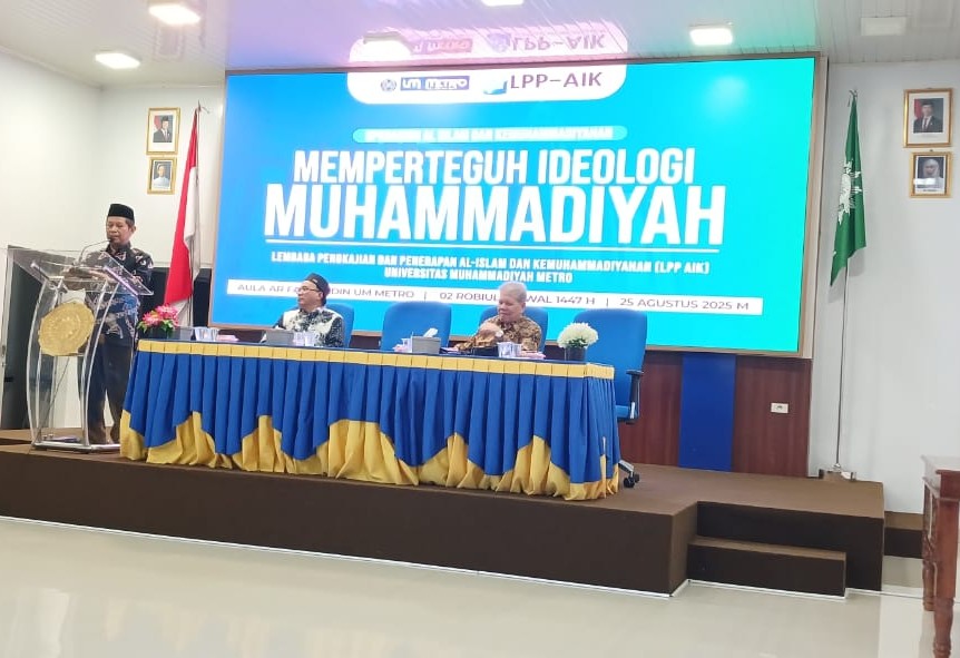 UM Metro, 22 Agustus 2025. Universitas Muhammadiyah (UM) Metro kembali meneguhkan komitmennya dalam penguatan ideologi persyarikatan melalui kegiatan Upgrading Al-Islam dan Kemuhammadiyahan (AIK) dengan tema “Memperteguh Ideologi Muhammadiyah”. Acara ini menghadirkan narasumber utama dari Majelis Dikti Litbang PP Muhammadiyah, Prof. Achmad Jaenuri, Ph.D.